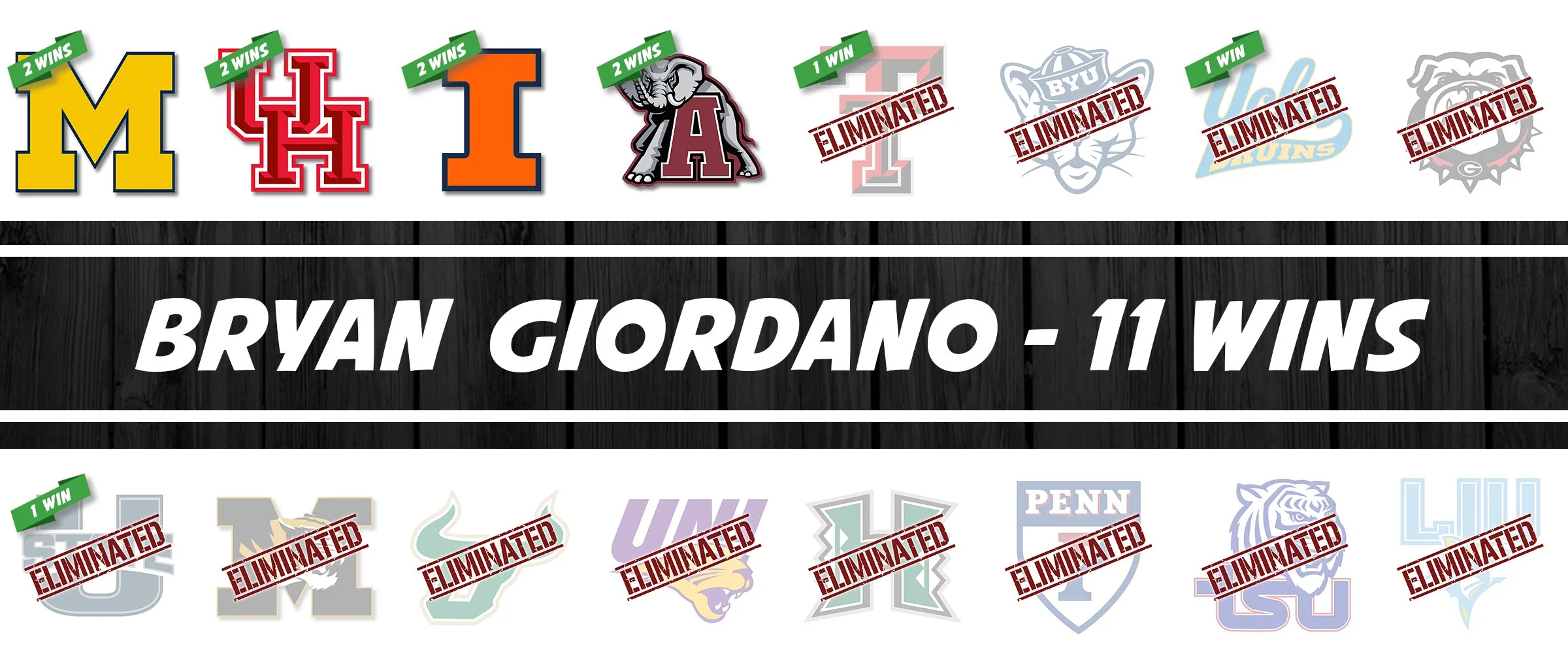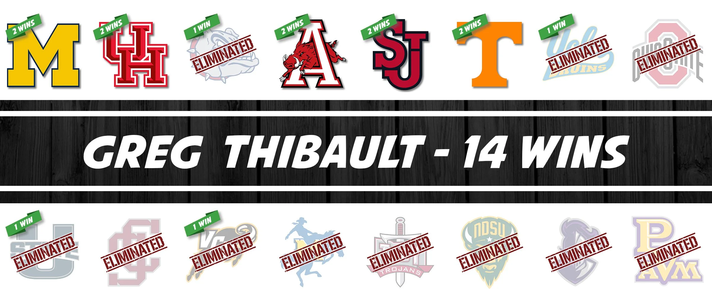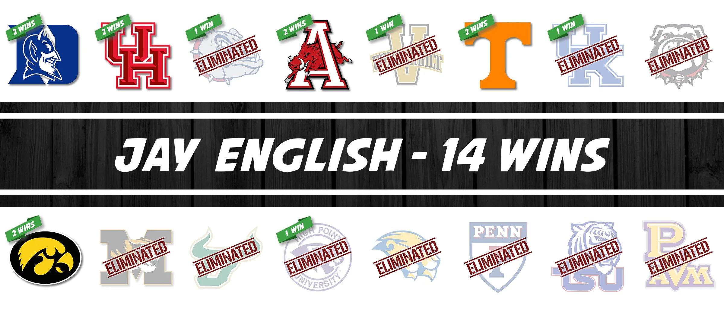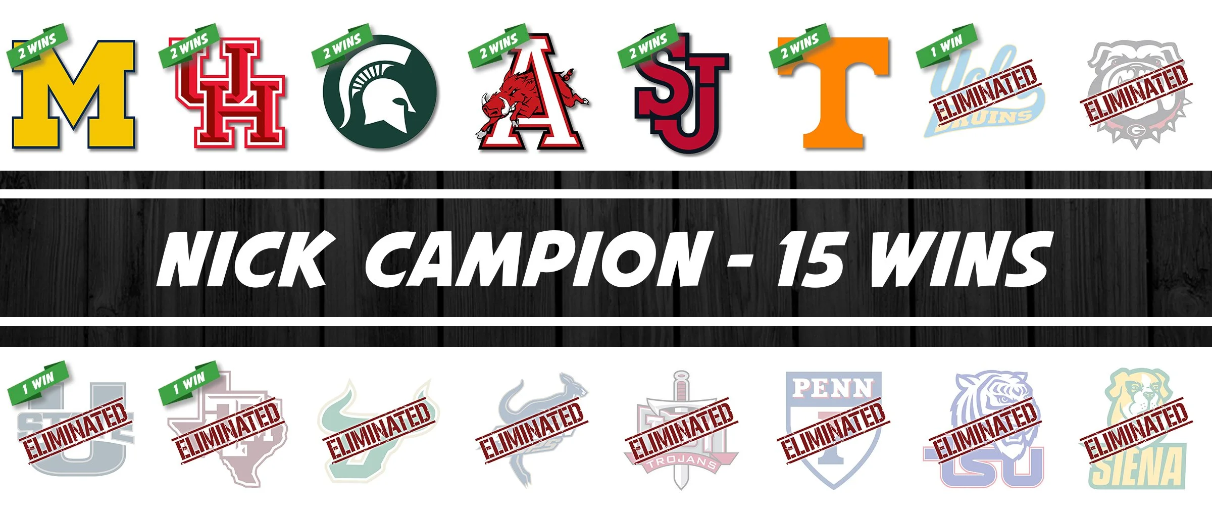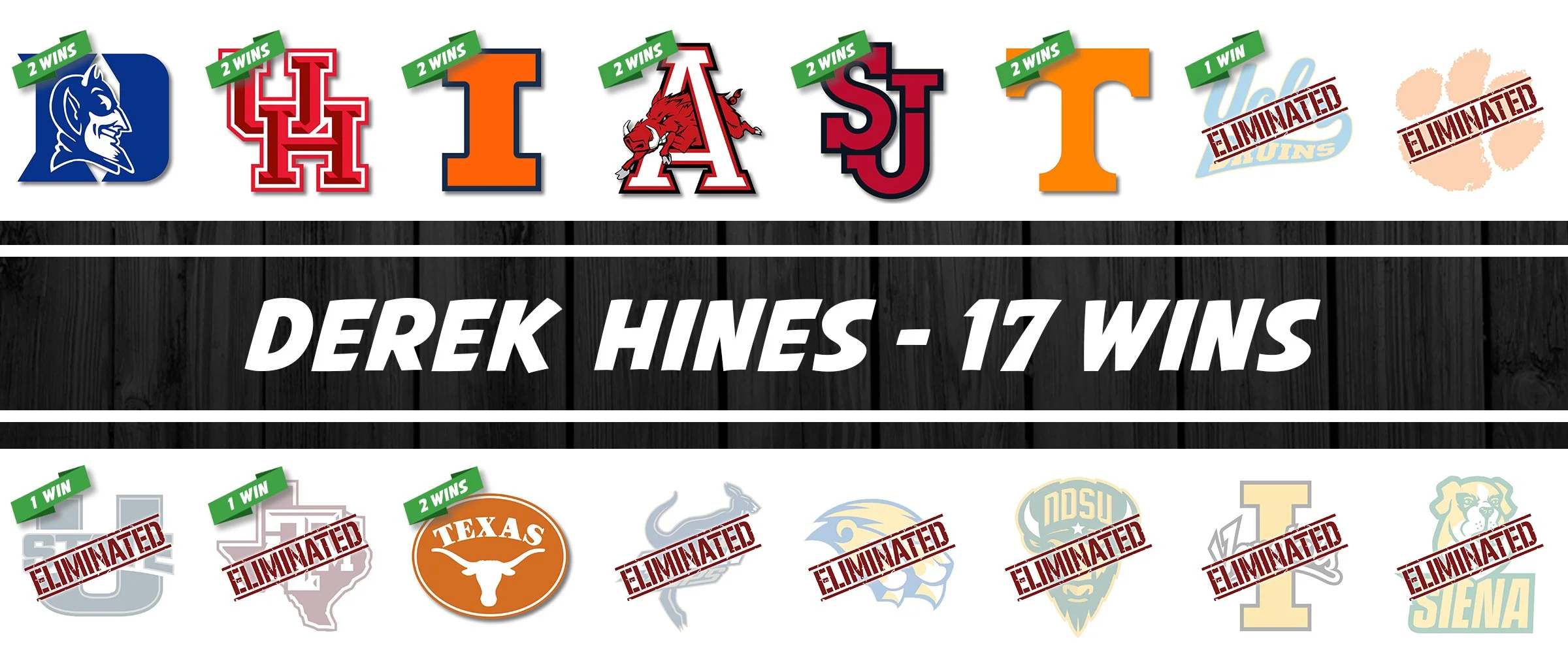 Derek has a small lead, but his roster is just two decisions away from perfection so far. If he took Iowa instead of Utah St and High Point instead of Akron, he would have the maximum 19 wins. Kudos Derek, but there are two teams that are just one win behind and two more team just two wins behind. A lot can still happen, but we have had a great start from several teams.